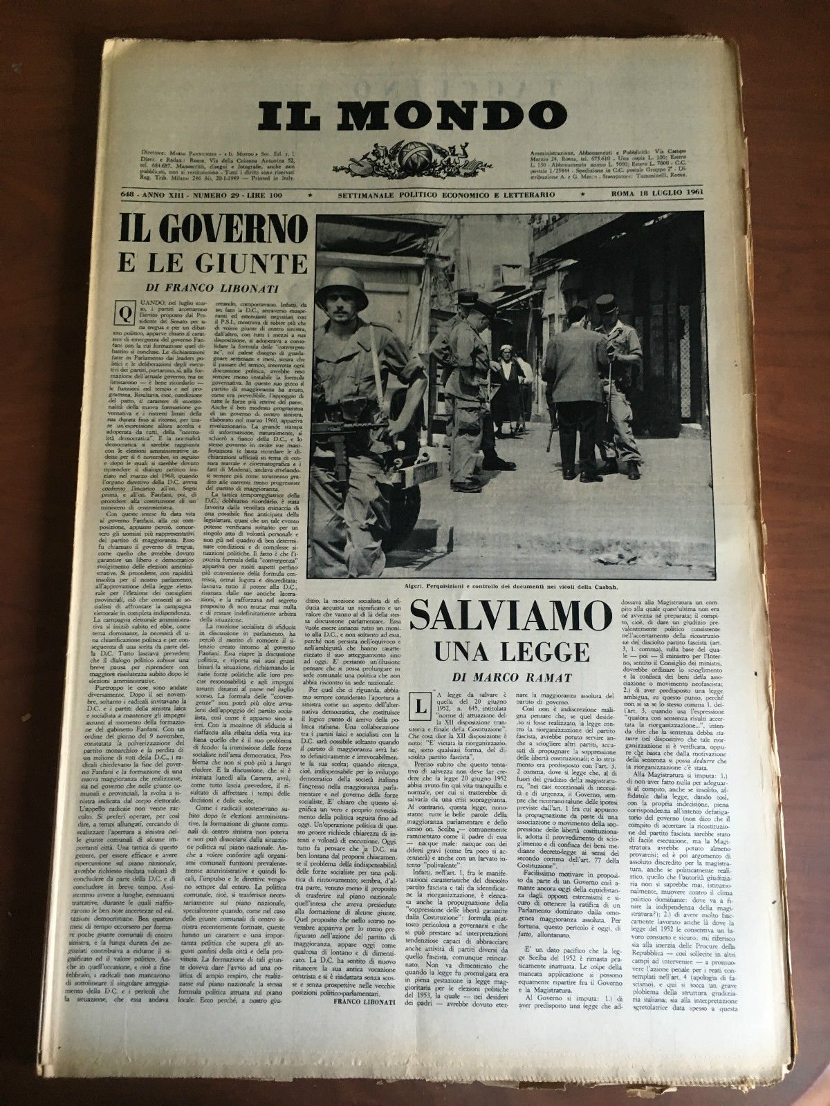 Il Mondo diretto da Mario Pannunzio 648 Anno XIII n^ 29 -18 Luglio 1961 - E21848