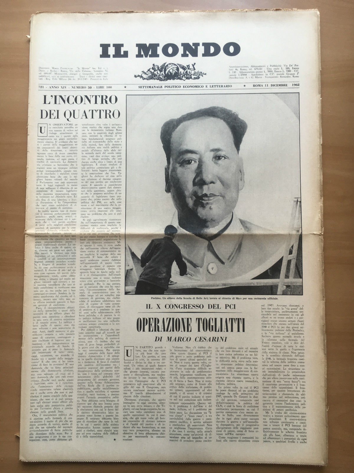 Il Mondo diretto da Mario Pannunzio 721 Anno XIV n^ 50-11 Dicembre 1962- E21920
