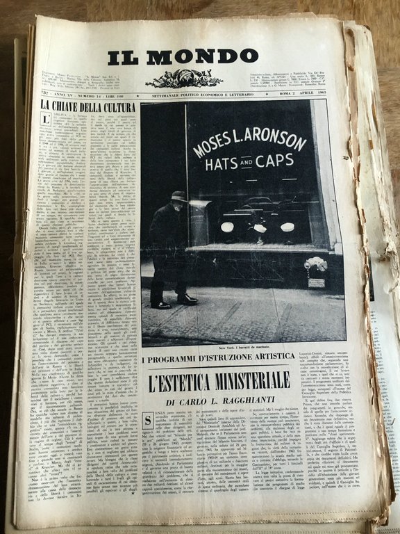 IL MONDO Settimanale Politico Economico e Letterariodiretto da Mario Pannunzioin buono stato salvo piccoli strappi ai bordi e nei segni di piega e lieve brunitura(circa 150 g)E21554