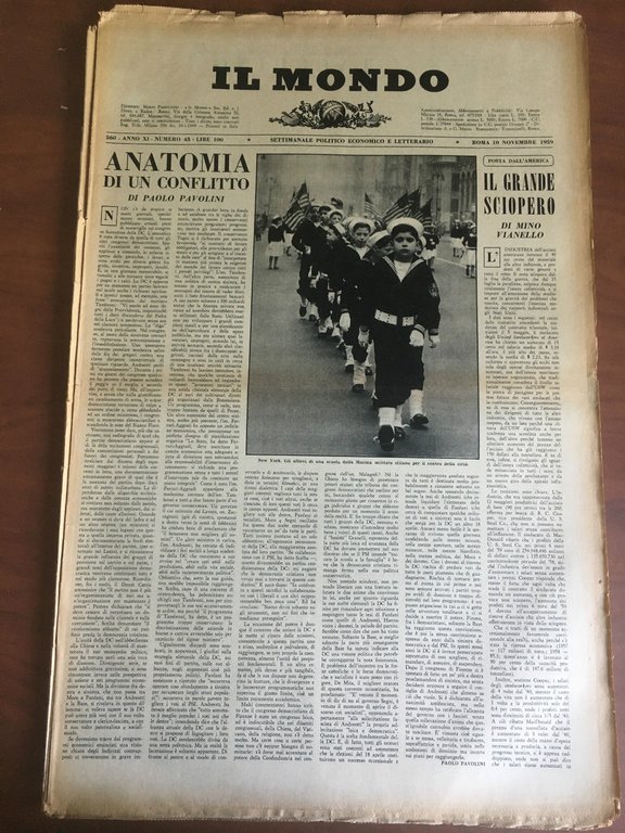 IL MONDO Settimanale Politico Economico e Letterariodiretto da Mario Pannunzioin buono stato salvo piccoli strappi ai bordi e nei segni di piega e lieve brunitura(circa 100 g)E22137