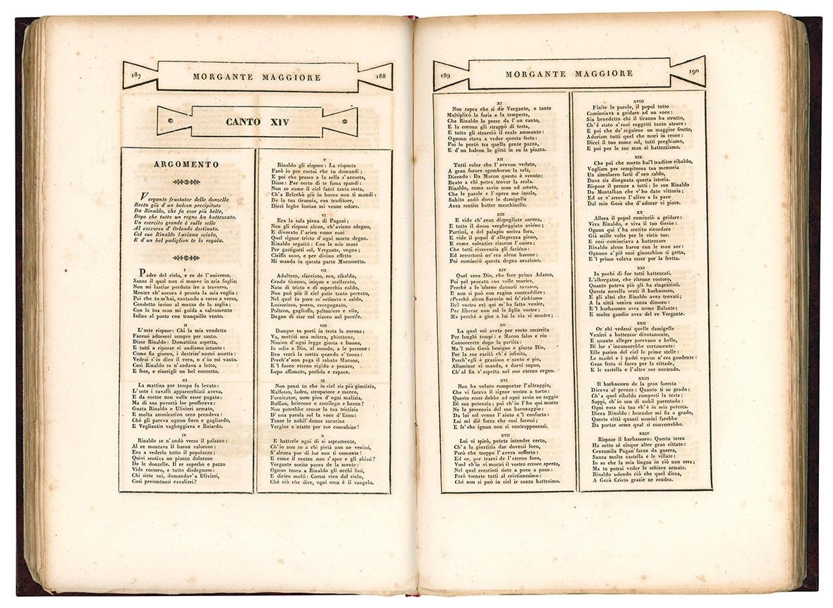 Quattro parti rilegate insieme in un volume in 8vo (mm 254x164); col. XIV, pp. [3], col. 580. Frontespizio entro cornice con piccola vignetta xilografica, ritratto calcografico dell'autore all'antiporta. Testo su due colonne entro cornice. Fioriture diffuse. Piena pelle moderna con filetti e titolo in oro al dorso. In barbe.