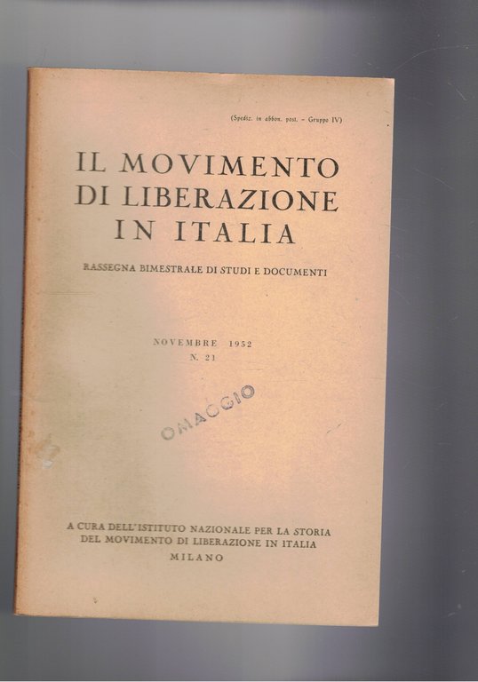 Il movimento di liberazione in Italia. Rassegna bimestrale di studi e documenti. Disponiamo dell'annata completa del 1952 in sei fascicoli. (uno è doppio).