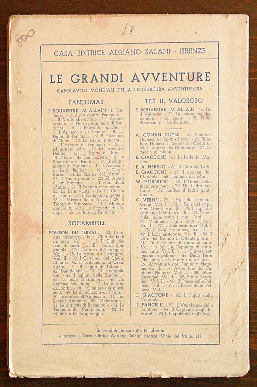 Volume I. Collana Le Grandi Avventure N.90. Ed. Adriano Salani - Firenze, 1931. Brossura editoriale firma di vecchia appartenenza all'occhietto e alla prima pagina (entrambe a matita). 13x19; pp.245. Ottimo stato. , Ottimo (Fine)