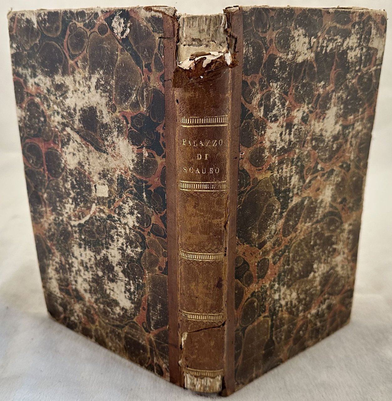 Edizione originale del 1825 di questa opera sull'architettura e bellezze del Palazzo di Marco Scauro, situato alle pendici del Monte Celio scritto da Francois Mazois (1783-1826) e Vincenzo Scamozzi (1548-1616) architetto e trattatista vicentino.<BR><BR>In appendice: "Volgarizzamento alla lettera di C. Plinio a Gallo - Descrizione della Villa Laurentina di C. Plinio fatta da Vincenzo Scamozzi".<BR><BR>"C'est un livre fort interessant et qui a eu beaucoup de succes" Graesse, IV, 458.<BR><BR>All'interno sono presenti 13 tavole fuori testo.<BR><BR>In buone condizioni.<BR><BR>Copertina in piena pelle coeva con titolo in oro al dorso in mediocri condizioni generali con usure e mancanze ai margini e dorso. Legatura in buone condizioni. All'interno le pagine si presentano in buone condizioni con fioriture. In 8. Dim. 23,5x14,5 cm. Pp. XXIV+240+XIII Pl.Original edition of 1825 of this work about architecture and beauties of the Palace of Marco Scauro, located in the base of Monte Celio written by Francois Mazois (1783-1826) and Vincenzo Scamozzi (1548-1616)architect from Vicenza.<BR><BR>In the appendix: "Volgarizzamento alla lettera di C. Plinio a Gallo - Descrizione della Villa Laurentina di C. Plinio fatta da Vincenzo Scamozzi".<BR><BR>"C'est un livre fort interessant et qui a eu beaucoup de succes" Graesse, IV, 458.<BR><BR>Inside there are 13 out of text plates.<BR><BR>In good conditions.<BR><BR> <BR><BR>Leather coeval cover with gilted title in the spine in poor general conditions lightly worn in the extremities. Binding in good conditions. Inside pages are in good conditions with foxing. In 8. Dim. 23,5x14,5 cm. Pp. XXIV+240+XIII Pl.