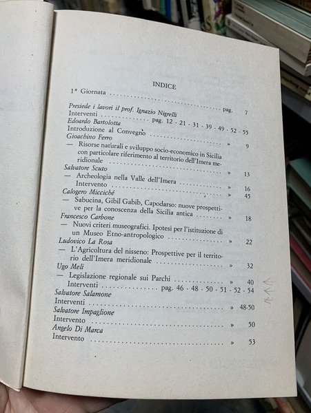Atti del convegno regionale tenutosi a Caltanissetta il 1 e 2 Dicembre 1984 col patrocinio dell'Assessorato Regionale Territorio e Ambiente; corredato da fotografie in b.n. n.t e f.t - DETTAGLIO DELLE CONDIZIONI : Firma di originaria appartenenza al piatto anteriore - (55g).