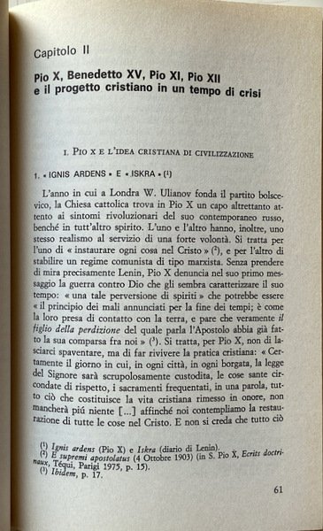 Cap. II Pio X, Benedetto XV, Pio XI, Pio XII e il progetto cristiano in un tempo di crisi