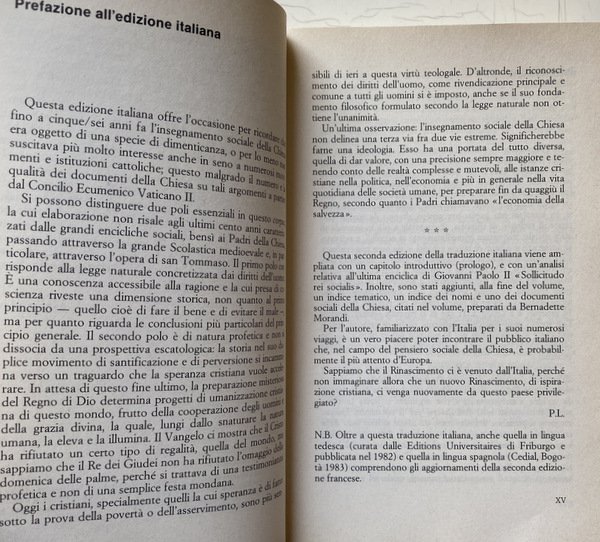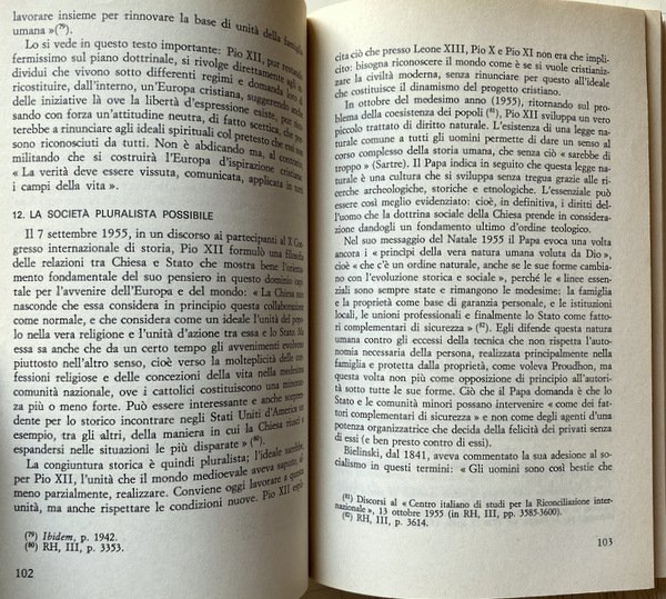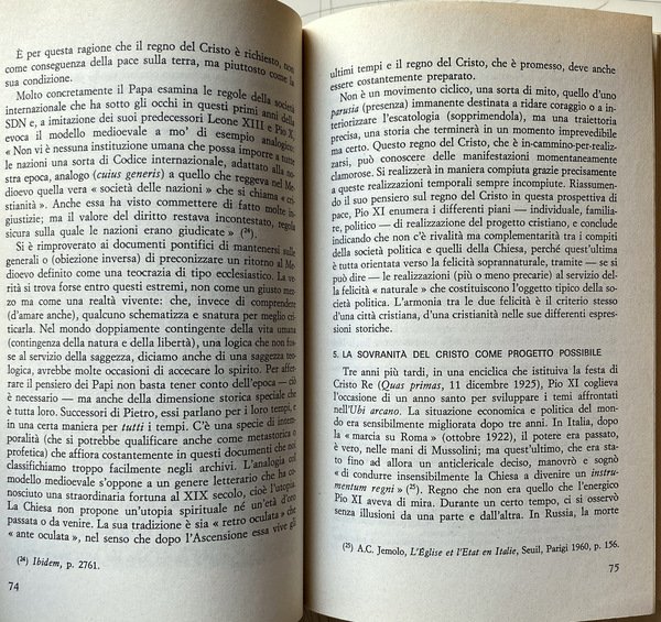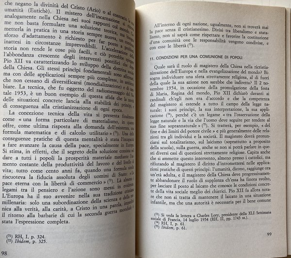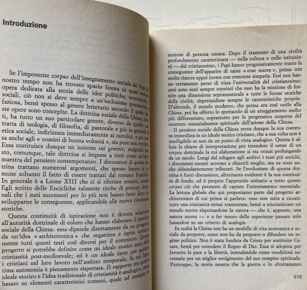 Soggetti: Religione, Spiritualità, Cristianesimo, Chiesa cattolica romana, Istituzioni e organizzazioni cristiane, Cattolicesimo romano, Filosofia, Pensiero, Storia, Dottrina sociale, Teologia, Idee sociali, Ideale storico cristiano, Jacques Maritain, Marxismo, Socialismo, Sociologia, Società, Famiglia, Educazione, Cultura, Pedagogia, Catechesi, Ecumenismo, Dogma, Guerra, Eresie, Civilizzazione, Evangelizzazione, Diritti umani, Etica, Morale, Papa, Clero, Encicliche, Documenti pontifici, Riferimento, Fonti, Consultazione, Universalismo, Peccato, Pace, Pacifismo, Politica, Patristica, Padri, Comunione, Altre religioni, Convivenza, Ortodossia, Ebraismo, Eresie, Islam, Fondamentalismo, Socializzazione, Economia, Povertà, Ricchezza, Capitalismo, Terzomondismo, Pastorale, Procreazione, Aborto, Proprietà privata, Positivismo, Progresso, Stato, Relazioni, Potere spirituale e temporale, Secolarizzazione, Laicismo, Protestantesimo, Praxis, Comte, Aristotele, Sionismo, Antisemitismo, Nazismo, Comunismo, Persecuzioni, Shoah, Feuerbach, Fourier, Lenin, Marx, Tommaso Moro, Tomistica, San Tommaso, Pio XII, Wyszynski, Benedetto XV, Rousseau, Giovanni XXIII, Leone VIII, Paolo VI, Saint-Simon, Rivoluzione, Libero arbitrio, Libertà, Schiavitù, Prostituzione, Bambini, Crisostomo, Giobbe, Apostoli, Sacra Scrittura, Bibbia, Esegesi biblica, Durkheim, Bielinski, Bergson, Marx, Mussolini, Concordato, Francia, Germania, Italia, Cristianità, Unione, Imperialismo, Engels, Erasmo, Calvino, Lutero, Controriforma, Indulgenze, Valori, Violenza, Attualità, Verbo, Utopia, Uguaglianza, Umanesimo, Trasfigurazione, Trascendenza, Solidarnosc, Solidarietà, Sottosviluppo, Speranza, Magistero, Sindacalismo cristiano, Razza, Razzismo, Realismo, Rinnovamento, Rivelazione, Regno di Dio, Rivoluzione, Scuola, Scolastica, Sacra Congregazione, Scienza, Creazione, Genesi, Musulmani, ONU, Ordine mondiale, Paradiso, Parusia, Pensatori, Ateismo, Liberalismo, Lotta, Machiavellismo, Coscienza, Matrimonio, Battesimo, Materialismo, Militarismo, Messianismo, Metafisica, Mondializzazione, Monogamia, Moralità, Monachesimo, Modernismo, Medioevo, Messaggio, Fraternità, Gesuiti, Ignazio di Loyola, Ilemorfismo, Grazia, Incarnazione, Lavoro, Legge, Mosè, Impero, Inconscio, Individualismo, Culto, Riti, Magia, Miracoli, Democrazia, Vita, Eutanasia, Disarmo, Donna, Dossologia, Dialettica, Favelas, Attivismo, Bene, Male, Satana, Esorcismo, Bidonvilles, Capitale, Lavoro, Sfruttamento, Conoscenza, Carità, Banlieues, Azione, Beatitudine, Amore, Africa, America Latina, Apocalisse, Gerusalemme, Terra Santa, Israele, Crociate, Arca divina, Autorità, Autoritarismo, Libri Vintage Fuori catalogo, Libri rari, Aldilà, Eternità, Storia delle religioni, Pape, Eglise, Dieu, l'Encyclique l'esprit l'Etat l'histoire l'homme l'humanité l'ordre chrétienne Christ christianisme cité civilisation idéal idéologies Jean Paul justice l'amour société économique famille fondement philosophie Pie XII plan plutôt politique porte possible pouvoir pratique catholique charité progrès théologique, Religion, Spirituality, Christianity, Roman catholic church, Christian institutions and organizations, Roman Catholicism, Philosophy, Thought, History, Social doctrine, Theology, Ideas, Christian historical ideal, Socialism, Sociology, Society, Family, Education, Culture, Pedagogy, Catechesis, Ecumenism, War, Heresy, Civilization, Evangelization, Human rights, Ethics, Moral, Pope, Clergy, Encyclicals, Pontifical documents, Reference, Sources, Consultation, Universalism, Sin, Peace, Pacifism, Politics, Patristics, Fathers, Communion, Other religions, Coexistence, Orthodoxy, Judaism, Heresy, Islam, Fundamentalism, Socialization, Economy, Poverty, Wealth, Capitalism, Third Worldism, Pastoral, Procreation, Abortion, Private property, Positivism, Progress, State, Relations, Spiritual and temporal power, Secularization, Secularism, Protestantism, Praxis, Aristotle, Zionism, Anti-Semitism, Nazism, Communism, Persecutions, Thomas More, Thomistics, Pius XII, Benedict XV, John XXIII, Leo VIII, Paul VI, Revolution, Free will, Liberty, Slavery, Prostitution, Children, Chrysostom, Job, Apostles, Holy Scripture, Bible, Biblical exegesis, Concordat, France, Germany, Italy, Christianity, Imperialism, Erasmus, Luther, Counter-Reformation, Indulgences, Values, Violence, Actuality, Word, Equality, Humanism, Transfiguration, Transcendence, Solidarity, Underdevelopment, Hope, Magisterium, Christian syndicalism, Race, Racism, Realism, Renewal, Revelation, Kingdom of God, Revolution, School, Scholastics, Sacred Congregation, Science, Creation, Genesis, Muslims, World order, Paradise, Thinkers, Atheism, Liberalism, Struggle, Consciousness, Marriage, Baptism, Materialism, Militarism, Messianism, Metaphysics, Globalization, Monogamy, Morality, Monasticism, Modernism, Middle Ages, Message, Fraternity, Jesuits, Ignatius of Loyola, Ilemorphism, Grace, Incarnation, Work, Law, Moses, Empire, Unconscious, Individualism, Worship, Rites, Magic, Miracles, Democracy, Life, Euthanasia, Disarmament, Woman, Doxology, Dialectic, Activism, Good, Evil, Satan, Exorcism, Work, Exploitation, Knowledge, Charity, Action, Bliss, Love, Apocalypse, Jerusalem, Holy Land, Israel, Crusades, Divine Ark, Authority, Authoritarianism, Out of print books rare books, Beyond, Eternity, History of religions