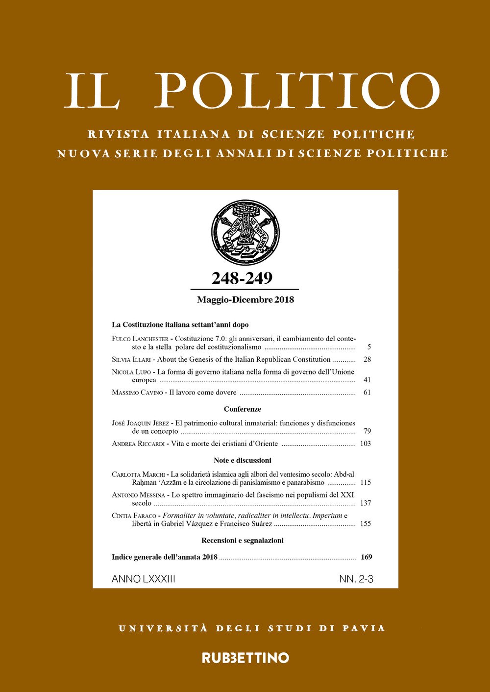 Il politico. Rivista italiana di scienze politiche. Vol. 248-249