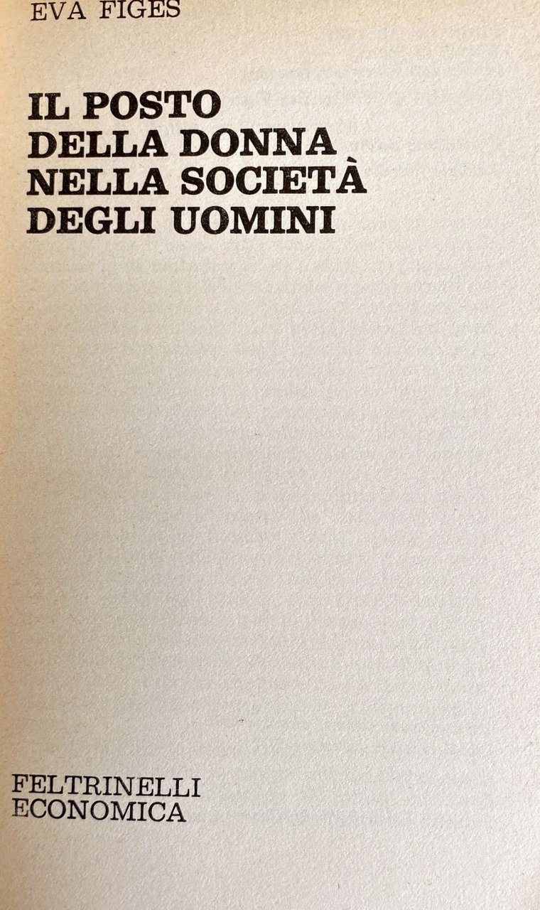 Soggetti: Società Sociologia Donne Femminismo Analisi Differenze di genere Patriarcato Matriarcato Bachofen Anni settanta Condizione femminile Parità Diritti Uomini Scienze sociali Sessualità Mentalità Studi culturali Psicologia Religione Chiesa Morale Etica Tabù Cultura dominante Contestazione Letteratura Libri vintage Lotta Femminista Ruolo Ruoli Femminilità Famiglia Donna Matrimonio Coppia Divorzio Literary criticism Feminism Comportamento Fecondazione Fertilità Classici Repressione Figli Maternità Lavoro Storr Midrash Sesso Carattero Sottomissione Emancipazione Rivoluzione Betty Friedan Mistica Alice Clark Bibliografia Riferimento Carroll Camden Douglas Kinsey Maccoby Malinowski Myrda Marcuse Sessantotto Wilhelm Reich Sullerot Russell Separazione Alimenti Indipendenza economica Lavori domestici Maschilismo Violenza Machismo Artisti Opere Genialità Genio Nevrosi Disturbi psichici Forza Casalinghe Trattamento economico Guadagno Corpo Society Sociology Women Analysis Gender differences Patriarchy Matriarchy Seventies Women's condition Equality Rights Men Social sciences Sexuality Mentality Cultural studies Psychology Religion Church Ethics Taboos Dominant culture Contestation Literature Books Struggle Feminist Role Roles Femininity Family Woman Marriage Couple Divorce Behavior Fertilization Fertility Classics Repression Children Maternity Work Sex Character Submission Emancipation Revolution Mysticism Bibliography Reference Sixty-eight Separation Alimony Independence Housework Violence Artists Works Genius Neurosis Mental disorders Strength Housewives Economic treatment Earnings Body Adam Behaviour Charlotte Bronte Child Christian Danger Death Devil Domestic Domination Emotions Father Fear Feminine Florence Nightingale Freud Eliot George Sand Girls Power Havelock Ellis Helene Deutsch Husband Inferior Instincts Intellectual Jews Labour Lady Lilith Male Memale Margaret Mead Mary Wollstonecraft Masculine Mother Nineteenth century Otto Weininger Physical pleasure Position Robert Graves Romantic Rosenthal Jacobson Viola Klein Terman Miles Winter Journey Subservient Christianity Capitalism Psychoanalysis