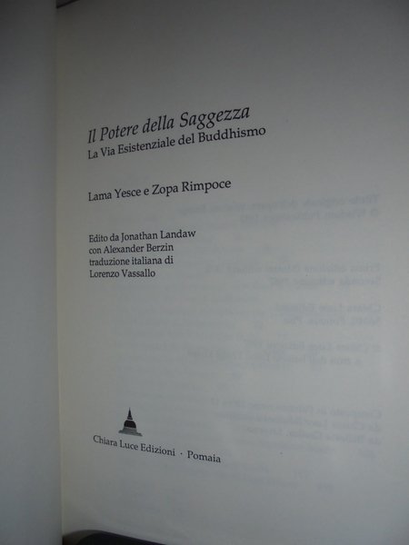 La via Esistenziale del Buddhismo. Lama Yesce e Zopa Rimpoce. Pisa, Chiara Luce Edizioni, 1987. In-16°, cartoncino edit. con alette. 158 pp. con alcune illustrazioni in bianco e nero n.t. Libro in ottimo stato di conservazione. Negozio mob. 5