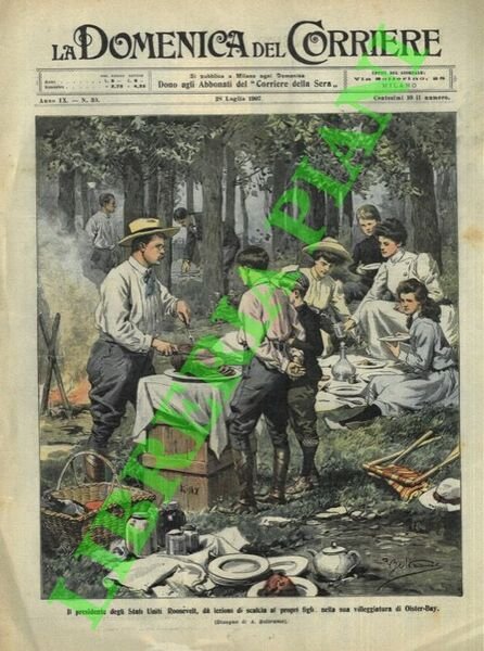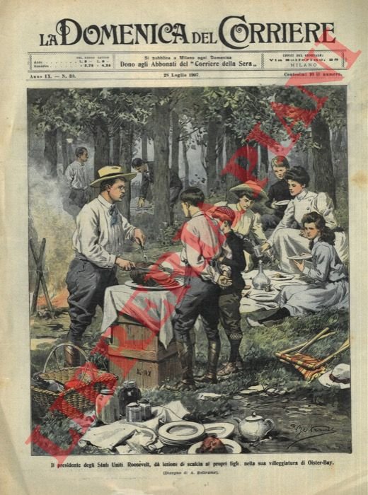 Milano, 28/07/1907, la sola copertina illustrata a colori, senza il fascicolo, della Domenica del Corriere.
