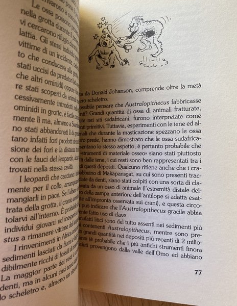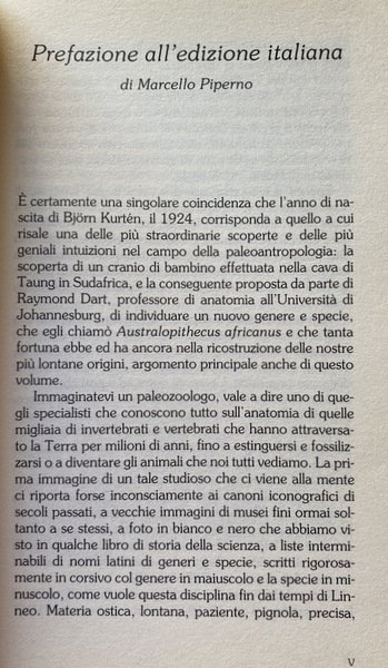 Soggetti: Paleontologia, Paleoantropologia, Scoperte, Reperti archeologici, Antropologia, Studi culturali, Opere generali, Saggistica, Paleo-zoologia, Preistoria, Protostoria, Biologia, Scienze della vita, Evoluzione, Divulgazione scientifica, Scienza, Storia antica, Uomo, Umanità, Scienze biologiche, Ere geologiche, Estinzione, Terra, Africa, Sudafrica, Australopitechi, Australopitechus africanus, Cranio, Anatomia, Analisi, Konrad Lorenz, Stephen Gould, Pensiero scientifico, Vertebrati, Antenati, Invertebrati, Animali preistorici, Dinosauri, Clima, Ere climatiche, Mammiferi, Era glaciale, Pleistocene, Primati, Scimmie antropomorfe, Etiopia, Ominidi, Struttura fisica, Peluria, Dismorfismo sessuale, Consultazione, Riferimenti, Bibliografia, Libri Vintage Fuori catalogo, Specie umana, Genetica, Orsi, Caverne, Speleologia, Fossili, Iene, Ominidi, Cervello, Misure, Peking Man, Mammut, Dinosauri, Teorie evoluzionistiche, Ecologia, Dispute, Leakey, Johanson, Brontosauros, Charles Darwin, George G. Simpson, Mammalia, Predatori, Rettili, Uccelli, Balene, Carnivori, Pesci, Ossa, Leone, Tigri, Kabwe, Rhodesia, Kenya, Miocene, Dimensioni craniche, Proscimmia, Glossario, Osso radio, Scheletro, Scimpanzé, Strumenti, Manufatti, Arnesi, Pietra, Tanzania, Ulna, Litici, Erectus, Neanderthal, Oligocene, Orme, Caccia, Cibo, Fuoco, Denti, Eocene, Grotte, Frutta, Bacche, Babbuini, America, Europa, Australia, Forskningens frontlinjer, Sivapithecus, Proconsul, Purgatorius, Ramapithecus, Gigantopithecus, Neandertalmänniskan, Aegyptopithecus, Koobi, Paleontology, Paleoanthropology, Discoveries, Archaeological finds, Anthropology, Cultural studies, General works, Non-fiction, Paleo-zoology, Prehistory, Protohistory, Biology, Life sciences, Evolution, Scientific dissemination, Science, Ancient history, Man, Humanity, Biological sciences, Geological eras, Extinction, Earth, South Africa, Australopithecines, Skull, Anatomy, Analysis, Scientific thinking, Vertebrates, Ancestors, Invertebrates, Prehistoric animals, Dinosaurs, Climate, Climatic eras, Mammals, Ice age, Pleistocene, Primates, Apes, Ethiopia, Hominids, Physical structure, Hair, Sexual dysmorphism, Consultation, References, Bibliography, Out of print books, Human species, Genetics, Bears, Caves, Speleology, Fossils, Hyenas, Hominids, Brain, Measurements, Mammoths, Dinosaurs, Evolutionary theories, Ecology, Disputes, Mammalia, Predators, Reptiles, Birds, Whales, Carnivores, Fish, Bones, Lion, Tigers, Miocene, Cranial size, Pro-monkey, Glossary, Rad bone, Skeleton, Chimpanzee, Tools, Artifacts, Tools, Stone, Lithic, Oligocene, Footprints, Hunting, Food, Fire, Teeth, Eocene, Caves, Fruit, Berries, Baboons, Europe