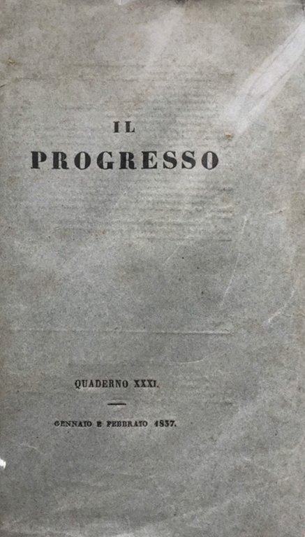 Il Progresso delle scienze, delle lettere e delle arti. Opera periodica. Vol. XVI, anno VI. 1837