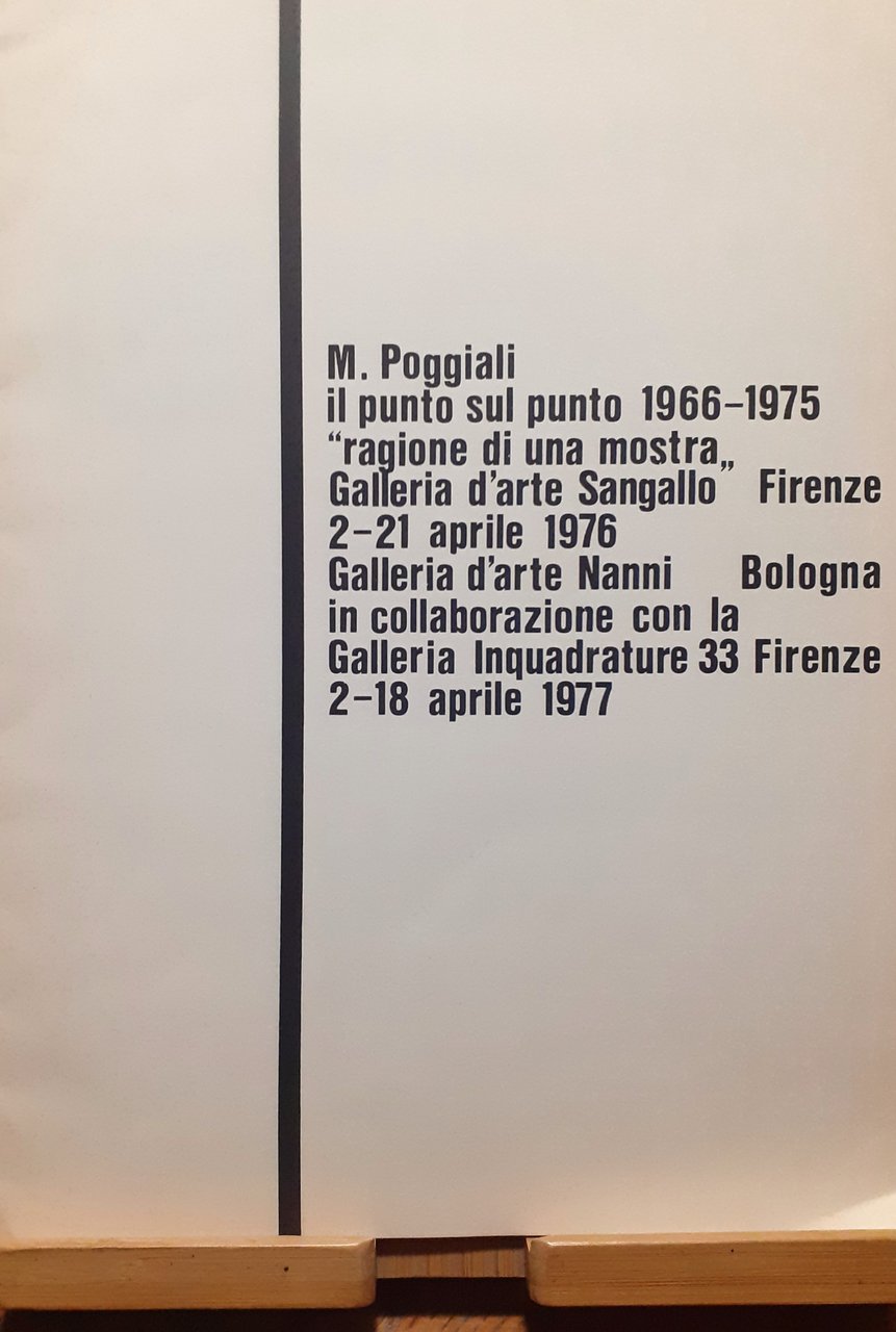 Il punto sul punto 1966-1975, ragione di una mostra": Galleria d'arte Sangallo, Firenze 2-21 aprile 1976 - Galleria d'arte Nanni, Bologna, in collaborazione con la Galleria Inquadratura 33, Firenze 2-18 aprile 1977"