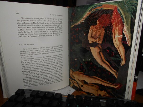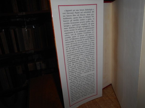 ROLAND VILLENEUVE. Firenze, Vallecchi Editore, 1961. Il Regno del Diavolo. Il Satanismo nell' Arte e nel Mondo. In-8°, tela edit. rossa con titolo in oro al dorso e figura sul piano anteriore, sovracopertina ill. a col. 338 pp. corredato da numerose illustrazioni nel testo e tavole fuori testo anche a colori. Cofanetto aggiustato alla base con scotch. Libro in ottimo stato di conservazione. Neg. esot. mob. 72 in basso