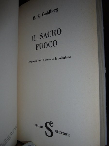 B.Z. Goldberg. Milano, Sugar Editore, 1968. Il Sacro Fuoco. I rapporti tra il sesso e la religione. In-8° piccolo, tela edit. con sovracopertina. 316 pp. Ben conservato. Neg. esot. mob. 51