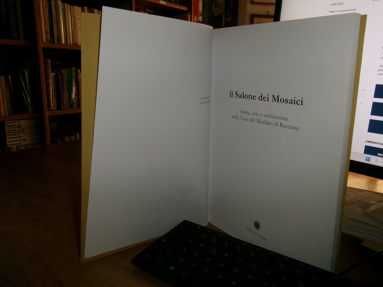 Con il Patrocinio del Comune di Ravenna. Ravenna, Edizioni del Girasole, 2019. Il Salone dei Mosaici. Storia, Arte e Architettura nella Casa del Mutilato di Ravenna. In-4° piccolo, cartoncino ill. a col. con grandi risvolti. 191 pp. con numerose illustrazioni a colori e in bianco e nero n.t. Come nuovo. Uff. stanzetta a sinistra 3 - 2 - 2 carc.