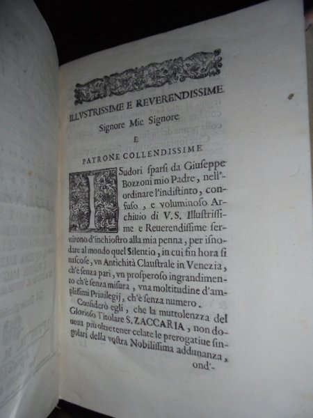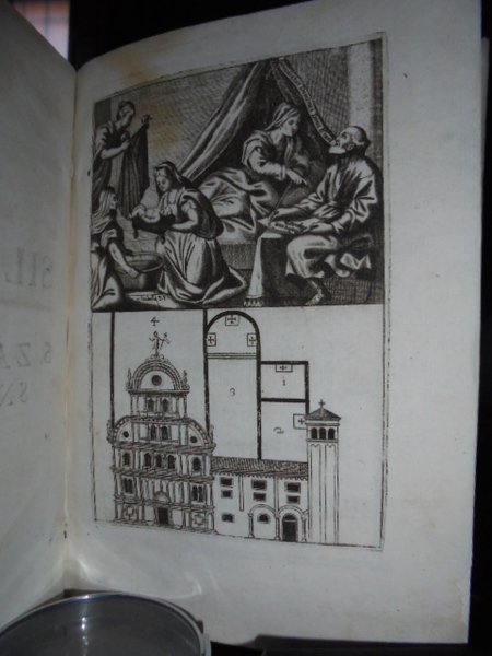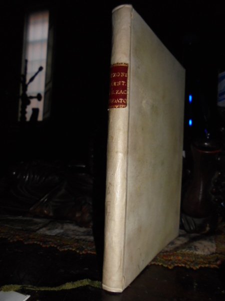 IL SILENTIO DI S.ZACCARIA SNODATO NELLA PUBLICATIONE DELL' ANTICHISSIMA ORIGINE, PROSPEROSI INGRANDIMENTI INSIGNE SUO MONASTERO DI VENETIA. IN-4° ANTICO, PERGAMENA SETTECENTESCA. (14), 99, (80) PP.CON BELLA ANTIPORTA INCISA IN RAME DA F. ISABELLA RAFFIGURANTE LA VERGINE CHE FA IL BAGNO A GESÙ BAMBINO ED IL PROSPETTO ARCHITETTONICO DEL MONASTERO. OTTIMO ESEMPLARE COMPETO. "LA VICENDA SOFFERTA DI QUESTO LIBRO PER CUI DA MOLTI ESEMPLARI FURONO STRAPPATI I PRIVILEGI È NARRATA NELLE ISCRIZIONI VENEZIANE OVE LUNGAMENTE SI ILLUSTRA LA CHIESA DI S. ZACCARIA" (CICOGNA, BIBLIOGRAFIA VENEZIANA, 82). CICOGNA. ISCRIZIONI VENEZIANE, II, P. 108; P. 112. COZZANDO, LIBRARIA BRESCIANA, P. 245. MAZZUCHELLI, SCRITTORI D' ITALIA, II, P. 1939. MANCA AL PIANTAMIDA. MOLTO RARO.
