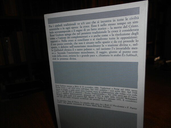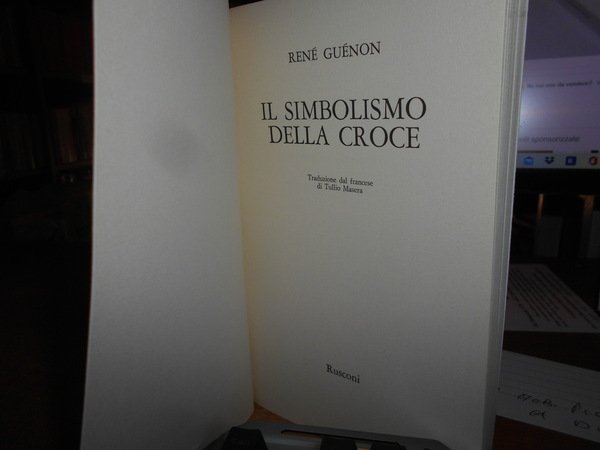René Guénon. Milano, Rusconi Editore, 1973. Il Simbolismo della Croce. Traduzione dal francese di Tulio Masera. In-8° piccolo, cart. edit. ill. a col. 215, (2) pp. Come nuovo. Uff. stanzetta mob. piccolo a destra