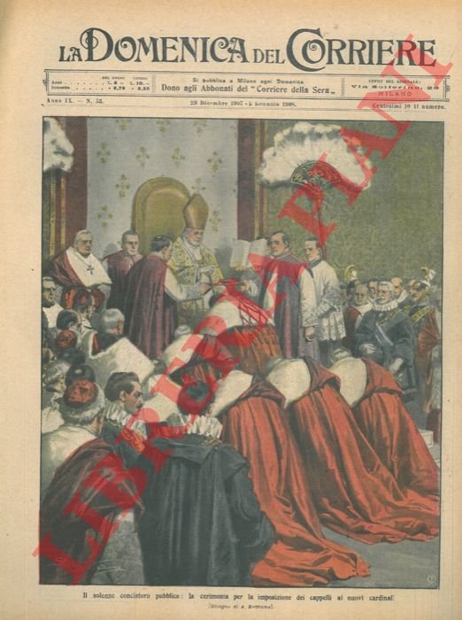Copertina illustrata a colori in fascicolo originale completo de "La Domenica del Corriere" del 29/12/1908