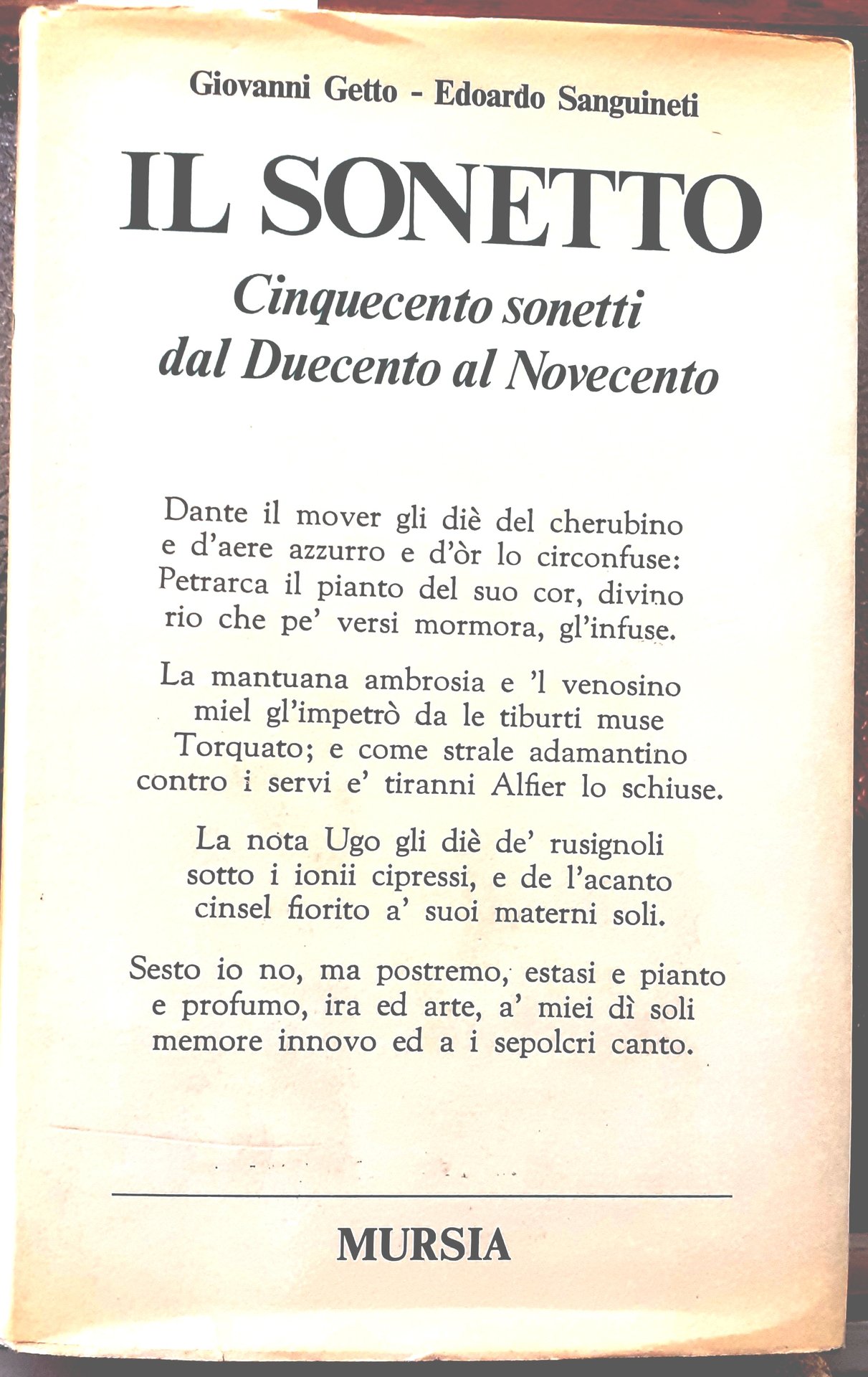 IL SONETTO. CINQUECENTO SONETTI DAL DUECENTO AL NOVECENTO.
