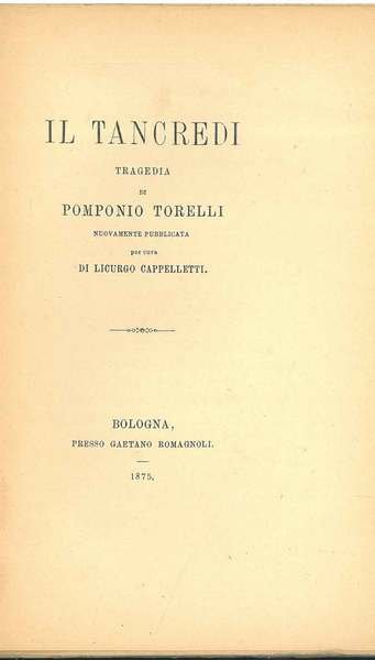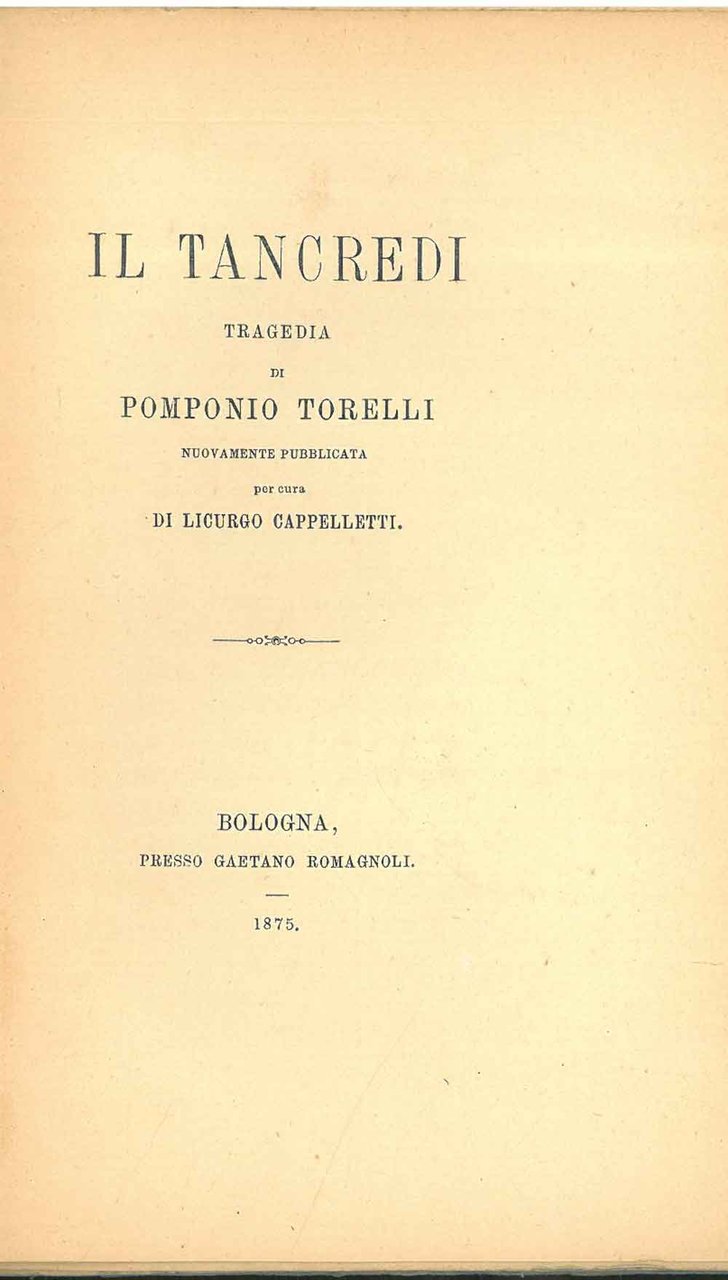 Il Tancredi. Tragedia di Pomponio Torelli nuovamente pubblicata per cura di L. Cappelletti