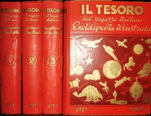 Il tesoro del ragazzo italiano. Enciclopedia illustrata concepita e diretta da Vincenzo Errante e Fernando Palazzi. I. Con 76 tavole e 1222 illustrazioni in nero e a più colori. II. Con 67 tavole e 856 illustrazioni in nero e a più colori. III. Con 58 tavole e 1002 illustrazioni in nero e a più colori. IV. Con 92 tavole e 970 illustrazioni in nero e a più colori. V. Con 63 tavole e 1180 illustrazioni in nero e a più colori. VI. Con 54 tavole e 1264 illustrazioni in nero e a più colori.