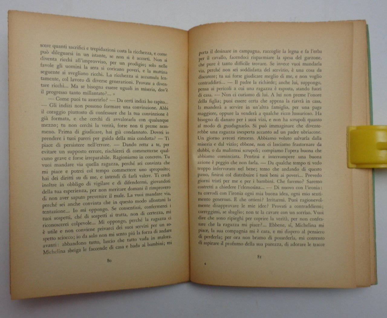 Collana "I gettoni", 5. Un volume di 163 pagine, brossura editoriale. Dimensioni: 13,5x19,5 cm. Piccoli difetti al dorso, lievi tracce del tempo alla brossura. A fogli chiusi. Margini delle pagine leggermente bruniti ma nel complesso ottime condizioni interne. Prima edizione (20 dicembre 1951).