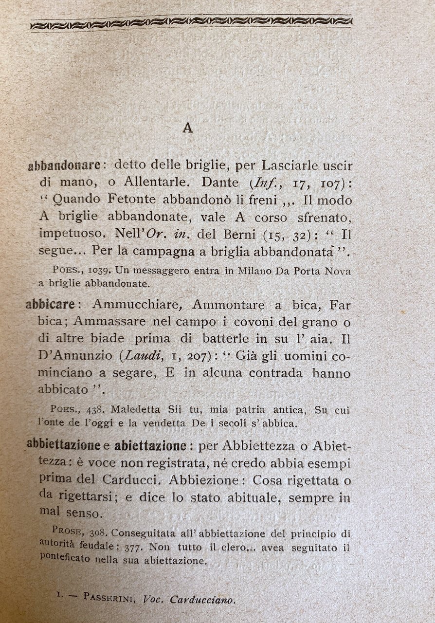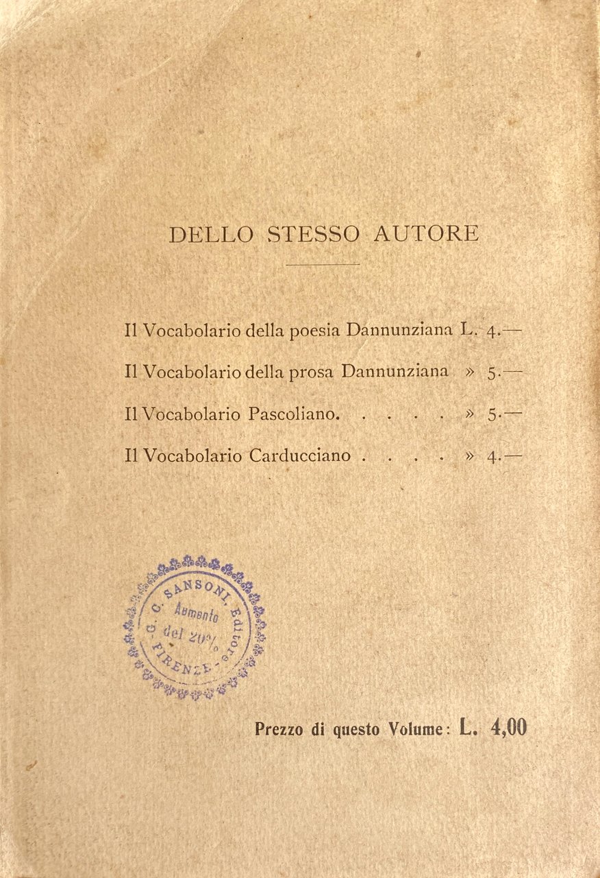 IL VOCABOLARIO CARDUCCIANO CON DUE APPENDICI AI VOCABOLARII DANNUNZIANI E AL PASCOLIANO DELLO STESSO AUTORE