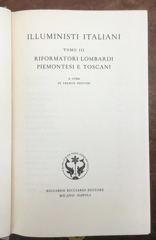 Illuministi italiani. Tomo III. Riformatori Lombardi, Piemontesi e Toscani. La Letteratura italiana, Storia e Testi. Volume 46 - Tomo III