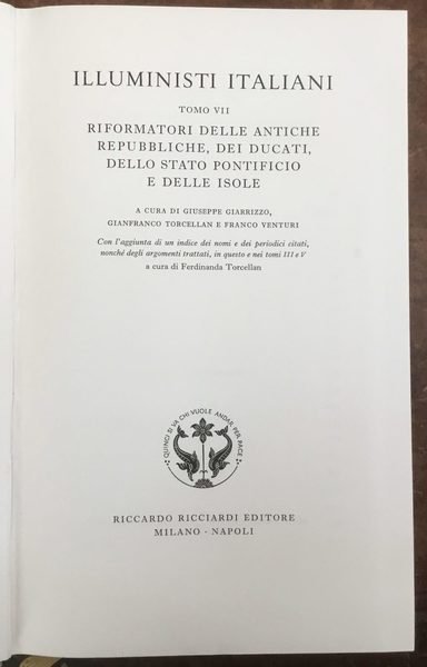 Illuministi italiani. Tomo VII. Riformatori delle antiche Repubbliche, dei Ducati, dello Stato Pontificio e delle Isole. La Letteratura italiana, Storia e Testi. Volume 46 - Tomo VII