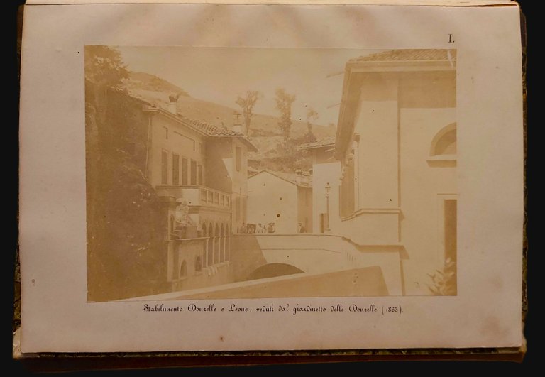 in-4, pp. VIII, 468, (4), leg. m. p. con tit. oro al d. e piatti in c. dec. coeva. Tagli spruzzati. Con 6 belle vere fotografie applicate a cartoncini rigidi raff. vedute delle terme e 12 tavv. litogr. al fine raff. frammenti di calcare, quarzi, la fotografia e caseggiati di Porretta, la pianta degli stabilimenti, porretta vecchia, stabilimenti del Leone e Bovi etc. Antip. lit. con stemma del paese. [519]