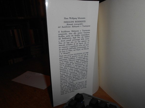 HANS WOLGANG SCHUMANN. Roma, Edizioni Mediterranee, 1989. IMMAGINI BUDDHISTE. Manuale iconografico del Buddhismo Mahayana e Tantrayana. In-8°, cart. edit. con sovracopertina ill. a col. 384 pp. con innumerevoli illustrazioni in bianco e nero n.t. Come nuovo. Uff. stanzetta mob. a destra.