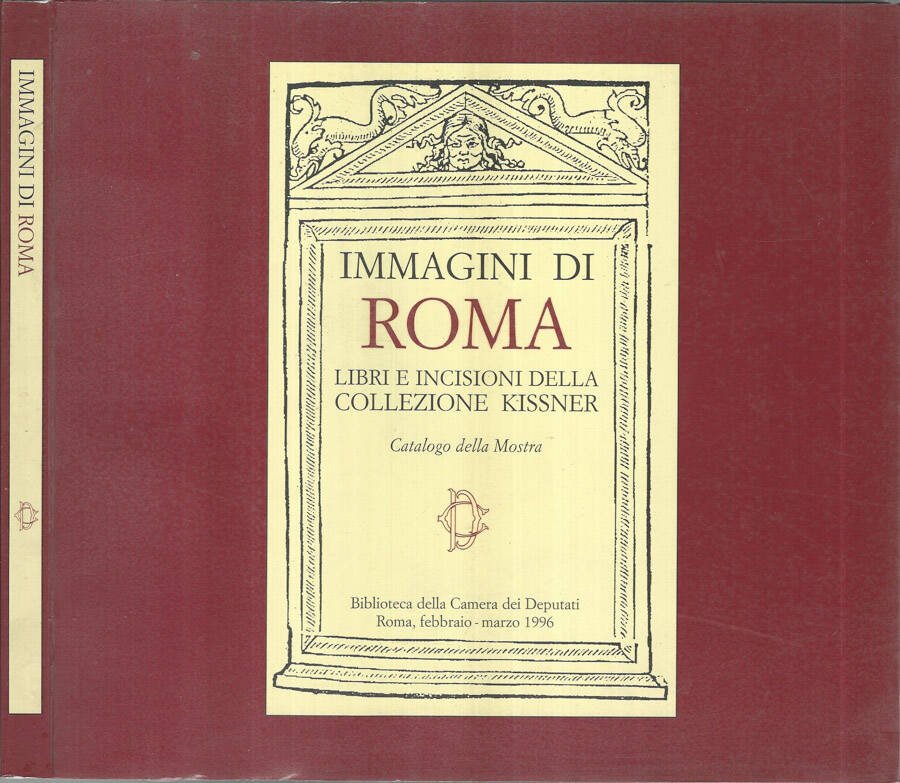 Catalogo della Mostra Immagini di Roma, Libri e incisioni della collezione Kissner, Biblioteca della Camera dei Deputati, 1996. Il catalogo si presenta in ottimo stato di conservazione, la copertina intatta. All'interno le pagine pulite, con numerose illustrazioni e riproduzioni a colori. Il dorso e la legatura in perfetta tenuta. Numero pagine 146.
