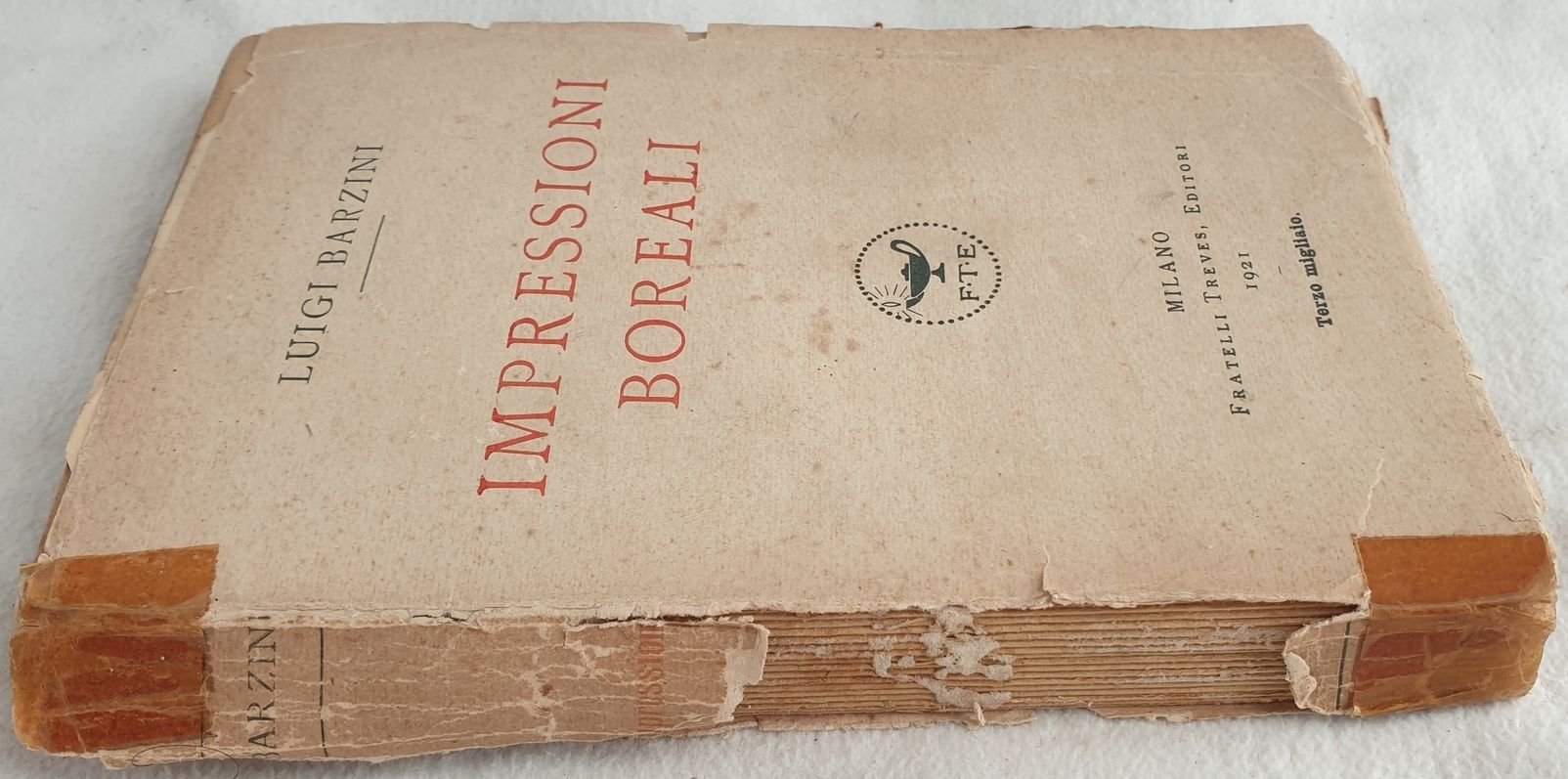 Edizione del 1921, terzo migliaio, di questa opera di viaggio in Nord Europa del giornalista Luigi Barzini.<BR>Tra i luoghi descritti: Danimarca, Langtan, Dalecarlia, Svezia ecc. In discrete condizioni. Copertina editoriale in mediocri condizioni generali con usure ai margini e dorso. Copertina con mancanze e quasi staccata. Legatura in discrete condizioni. All'interno le pagine si presentano in buone condizioni con fioriture. In 8. Dim. 19x12,5 cm. Pp. 270.Edition of 1921, third thousand, of this work of travel in Northern Europe written by the journalist Luigi Barzini.<BR>Betwen the places described: Denmark, Langtan, Dalecarlia, Sweden ecc.<BR>In fair conditions. Editorial cover in poor general conditions with wearings in the extremities. Cover with lackings and almost detached. Binding in fair conditions. Inside pages are in good conditions with foxing. In 8. Dim. 19x12,5 cm. Pp. 270.