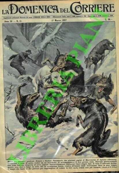 Milano, 17/03/1957, la sola copertina illustrata a colori, senza il fascicolo, della Domenica del Corriere.
