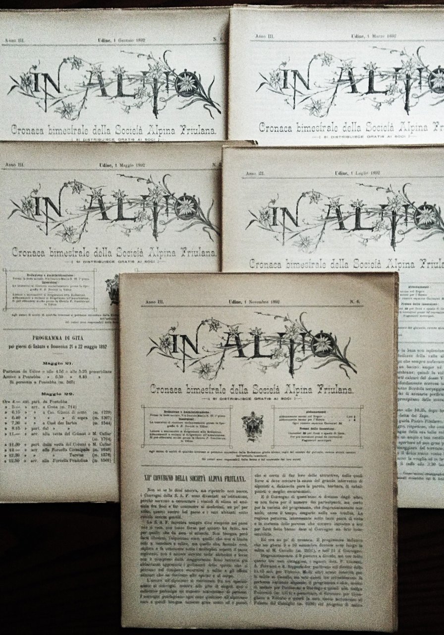 IN ALTO. Cronaca bimestrale della Società Alpina Friulana. Francesco Roncoroni gerente. Anno III, 1 Gennaio 1892, N. 1. - N. 6, 1 Novembre 1892.