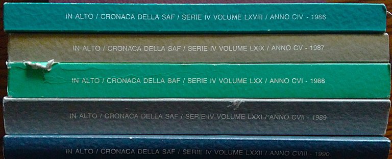 IN ALTO. Cronaca della Società Alpina Friulana. Sezione di Udine del Club Alpino Italiano. Serie IV - Vol. LXVIII - Anno CIV, 1986 - Vol. LXXII, Anno CVIII, Anno 1990.