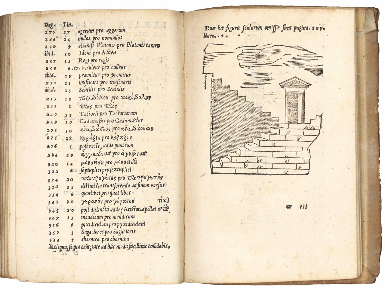 Scarce first edition, dedicated to the King of France Francis I, of Philandrier commentary on Vitruvius, that was reprinted in Paris in 1545 and later issued accompanying Vitruvius's actual text in Strasbourg in 1550 in 16mo and in De Tournes' enlarged 4to format in Lyons in 1552.