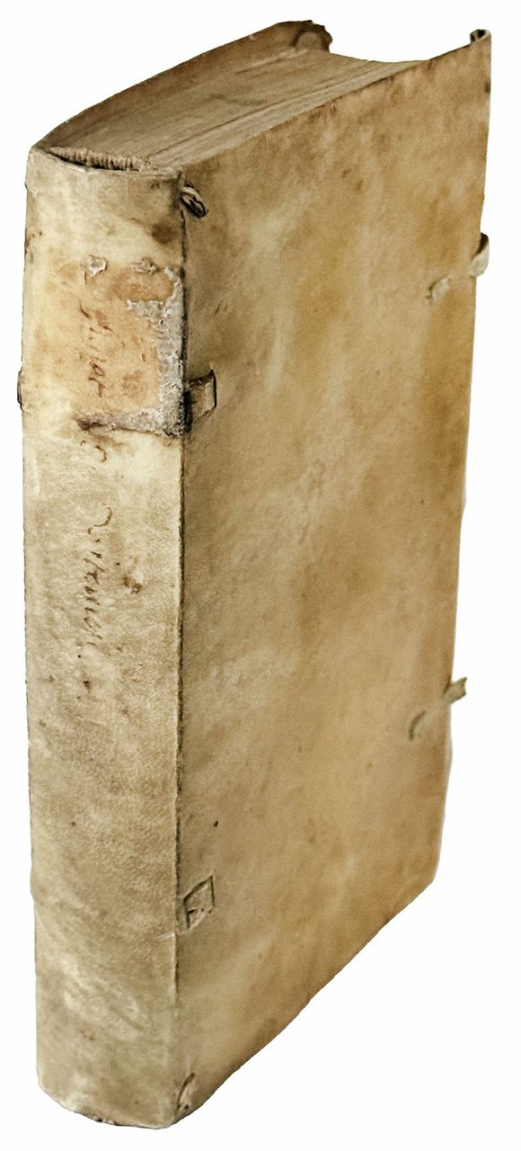 8vo (155x99 mm). [16], 369, [39] pp. Collation: a8 A-Z8 &8 AA8 BB4. Large printer's device on the title page and 65 woodcut illustrations in text. Colophon on last leaf verso. Woodcut initials. Italic, Greek, and Roman type. Contemporary flexible vellum with overlapping edges and inked title on spine (traces of ties). Ownership entry on the title page “Joan. Bap.ta Gabii”. Small hole on l. H1 with some loss of text, quire T slightly browned, otherwise a very good, extremely genuine copy in its first binding.