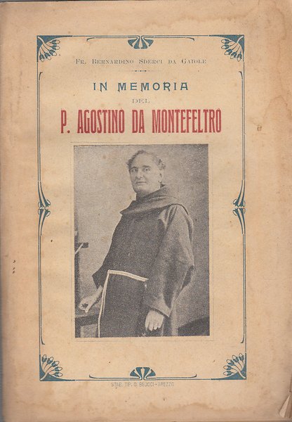 In-8 (Cm 21 x 15), pp. 43, brossura editoriale illustrata. Una tavola fuori testo. All'interno del testo è conservata una fotografia ottocentesca (Fotografia Donnini, Pisa") montata su cartoncino del P. Agostino da Montefeltro che viene venduta con il testo. Alone ai margini della brossura e minimamente alle pagine successive. Brunitura ai margini delle pagini.Ordinari segni del tempo. RARO, una sola copia censita in iccu - BUONO