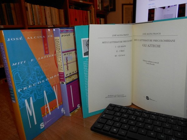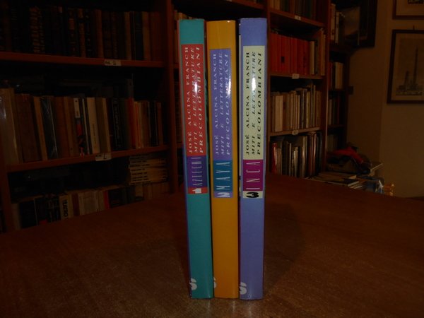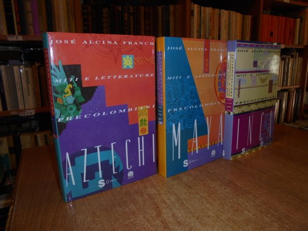 José Alcina Franch. Milano, Edizioni Sonda, 1991-1992. INCA. MAYA. AZTECHI. Edizione italiana a cura di Carla Rocchi. 3 volumi in-8°, tela edit. con sovracopertine ill. a col. 184, (2) pp.; 215, (2) pp.; 190, (1) pp. I tre volumi sono corredati da numerose illustrazioni a colori e in bianco e nero anche in tavole. Come nuovi. Uff. stanzetta mob. a sinistra centro.