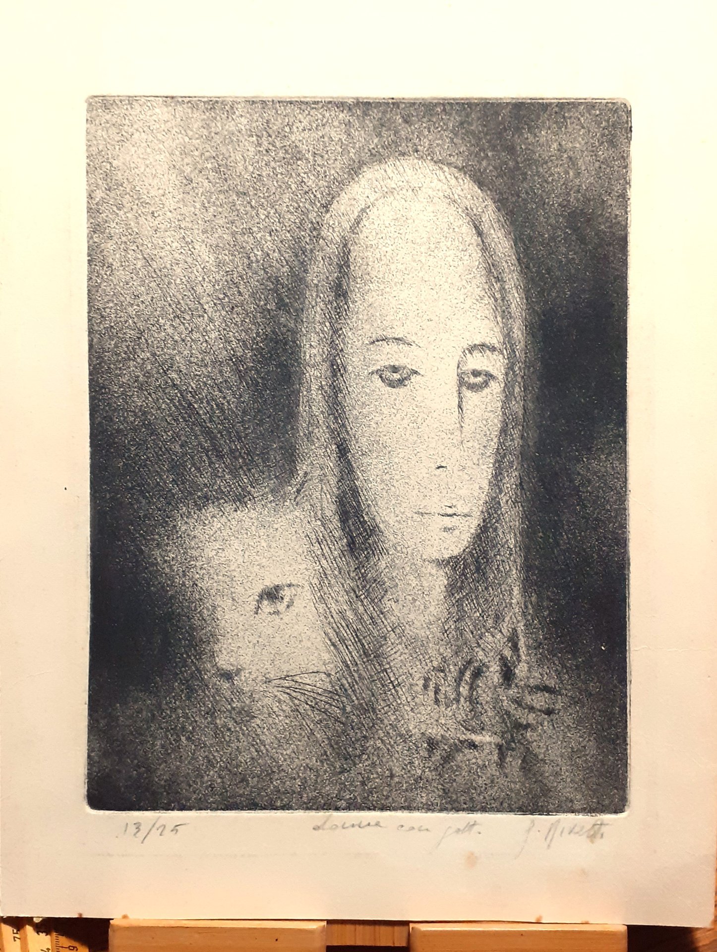 Incisione acquatinta "Donna con gatto" tiratura 13/25