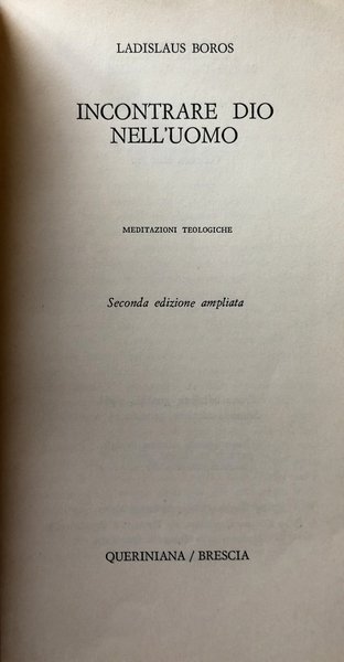 Soggetti: Spiritualità, Meditazioni, Teologia cristiana, Religione, Cristianesimo, Dasein, Encontrar a Dios en el hombre, Mysterium mortis, Fede, Dio, Esistenza, Vita, Menzogna esistenziale, Verità, Umanità, Venerazione, Preghiera, Fratello, Gioia, Amicizia, Amore, Magnanimità, Inerzia, Angoscia, Tranquillità, Sincerità, Umiltà, Giudizio, Conoscenza, Povertà, Luce, Tenebra, Tentazioni, Peccato, Colpa, Responsabilità, Giudizio, Parola, Verbo, Essere cristiani, Vita eterna, Ricchezza interiore, Purezza, Libri Vintage, Fuori catalogo, Meditations, Christian theology, Religion, Christianity, Spirituality, Faith, God, Existence, Life, Existential lie, Truth, Humanity, Veneration, Prayer, Brother, Joy, Friendship, Love, Magnanimity, Inertia, Anguish, Tranquility, Sincerity, Humility, Judgment, Knowledge, Poverty, Light, Darkness, Temptations, Sin, Guilt, Responsibility, Judgment, Word, Word, Being Christian, Eternal Life, Inner Wealth, Purity, Books Out of print