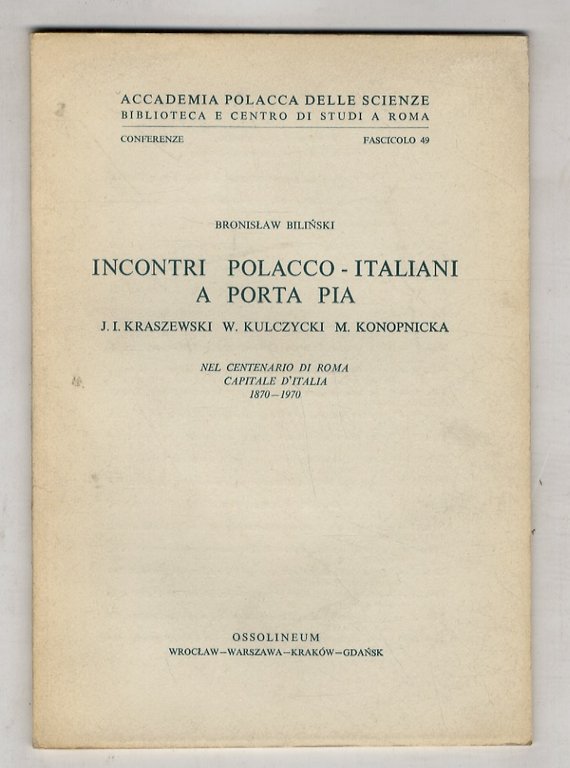 Incontri polacco-italiani a Porta Pia. J.I. Kraszewski, W. Kulczycki, M. Konopnicka. Nel centenario di Roma capitale d'Italia, 1870-1970.