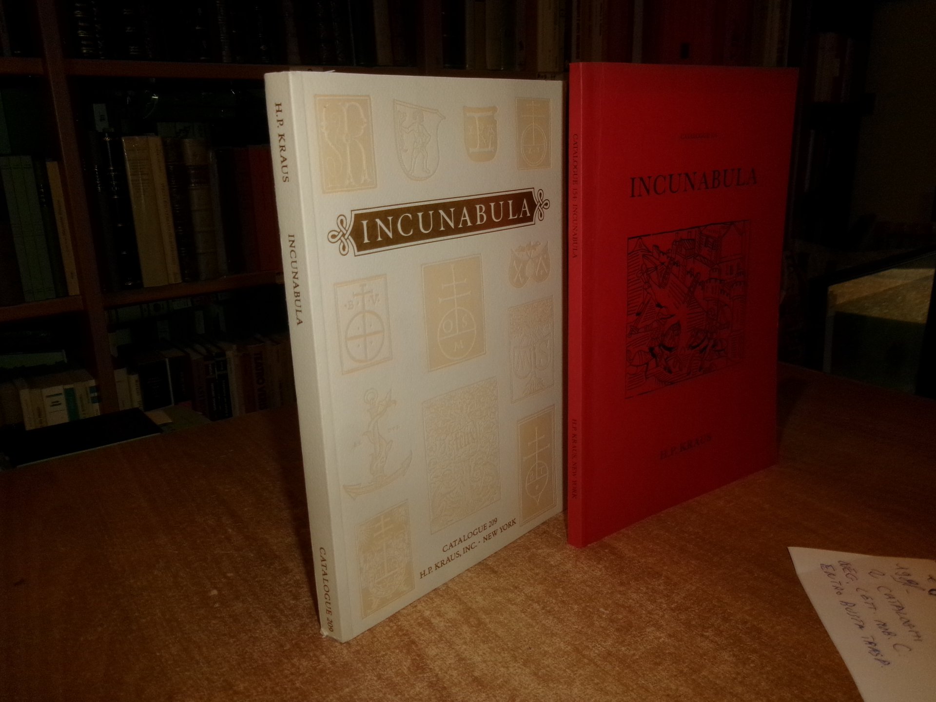 INCUNABOLA Catalogue 154 - 209. New York, H.P. KRAUS 1998. 2 cataloghi di una delle più famose librerie antiquarie del mondo con accurate descrizioni di numerosi rarissimi incunaboli, con prezzi. 90 pp; 200 pp. con molti facsimili in bianco e nero e bicromia n.t. Come nuovi. Neg. mob. C entro busta trasp.