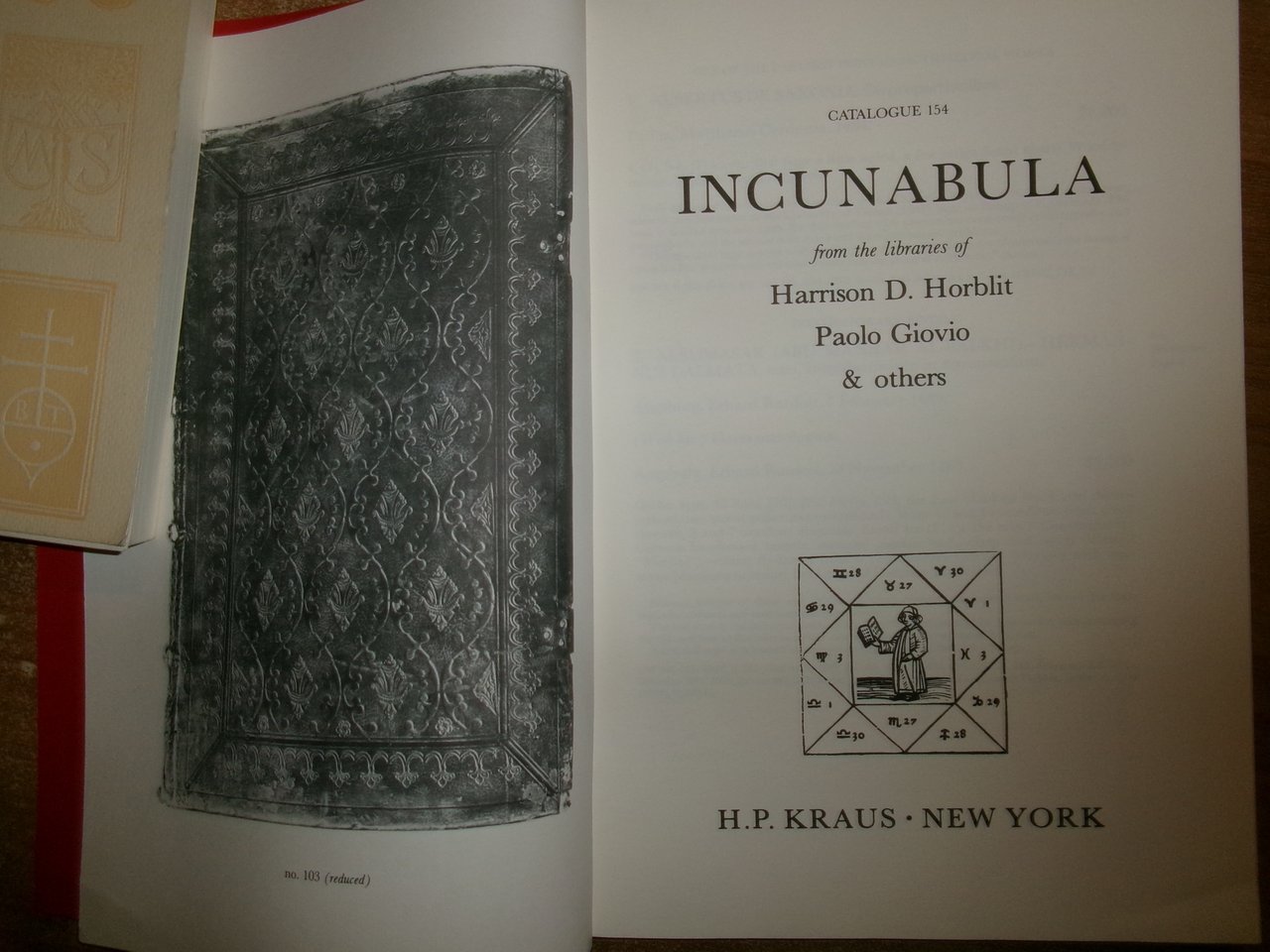INCUNABOLA Catalogue 154 - 209. New York, H.P. KRAUS 1998