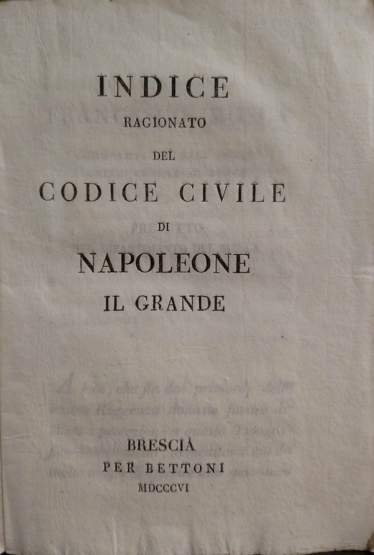 INDICE RAGIONATO DEL CODICE CIVILE di Napoleone il Grande.