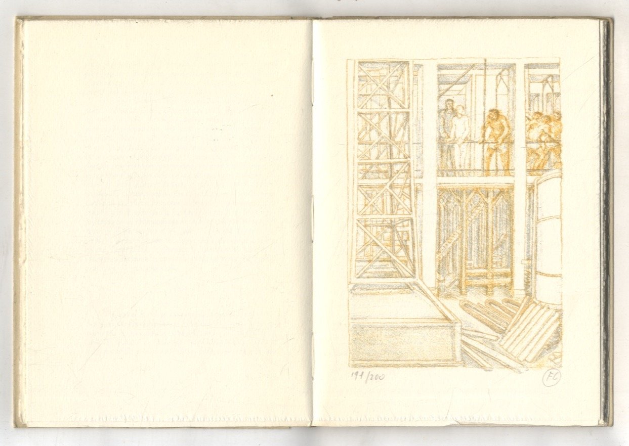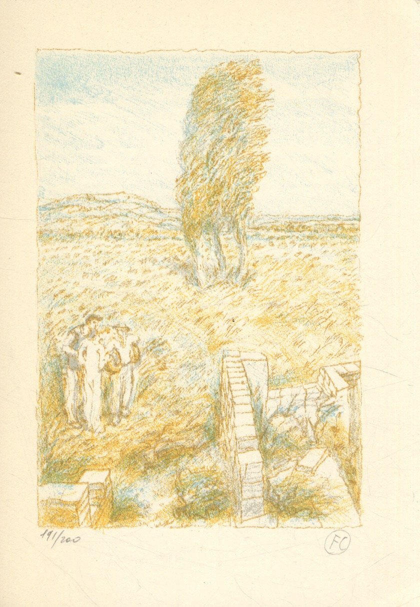 Urbino, Edizioni della Stamperia Posterula, 1976, in-8, cartone editoriale, pp. 60. Edizione di 250 esemplari, 50 in numeri romani, 200 in numeri arabi (ns. copia n. 191), su carta delle Cartiere Magnani di Pescia. Le litografie sono state firmate e numerate dall'autore. Ottime condizioni.