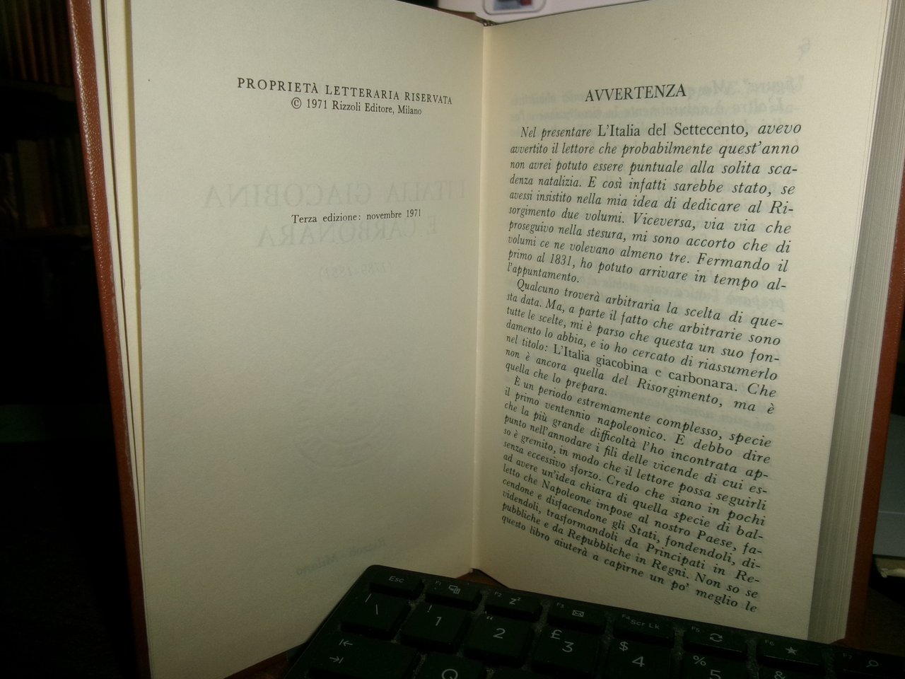 INDRO MONTANELLI. L' Italia Giacobina e Carbonara (1789-1831). Milano, Rizzoli Editore, 1971. In-16° grande, similpelle edit. con fregi e titolo in oro sul dorso. 700 pp. con alcuni ritratti n.t. Come nuovo con astuccio in m-tela. Uff. C - III - 1 - 2